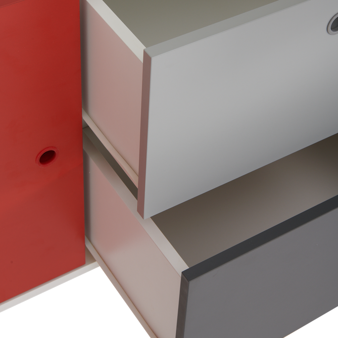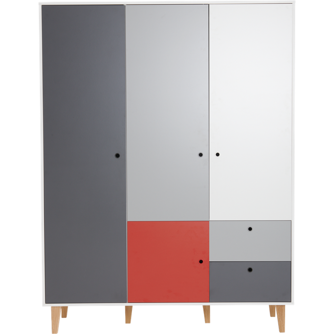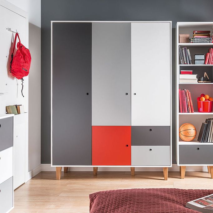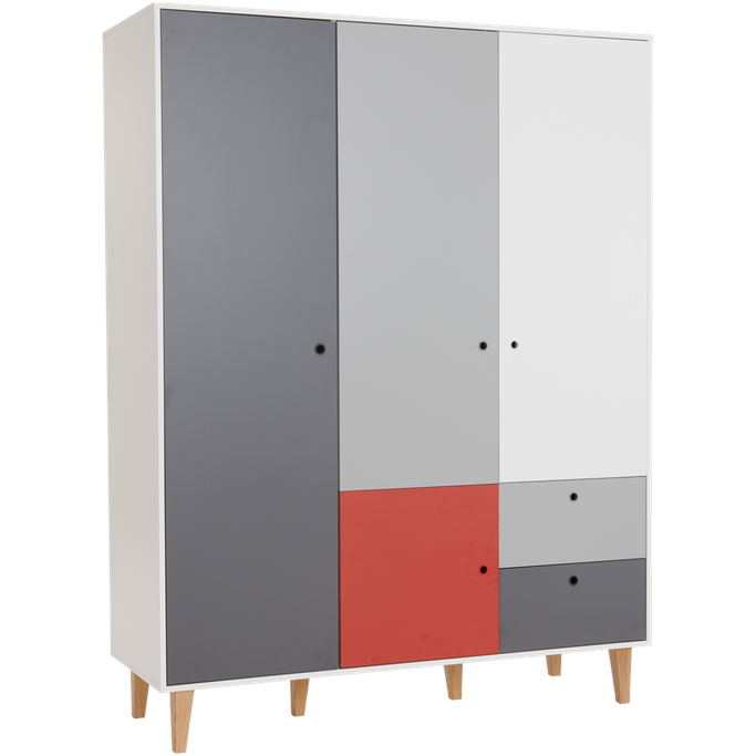جمال الألوان. انغمس في لحظات مليئة بالجمال والأناقة مع كونسبت دولاب. كل لون سيعيد ملء روحك بمشاعر الشغف والنشاط. ستخلق أدراج الدولاب المختلفة مساحة مميزة تعكس حرية اختياراتك الفريدة. سيحتوي الدولاب على جميع ملابسك وأحذيتك وملحقاتك الشخصية بشكل مثالي. سيوفر المقبض المجوف وصولاً سلسًا لمحتوى الأدراج الفسيحة. ستضفي أرجله مساحة واسعة وستعكس جمال التفاصيل في غرفتك. صنع الهيكل من الميلامين باللون الأبيض والأبواب بالرمادي والخزانة بالأحمر لإبراز المظهر الآسر لمنزلك. دع نسمات الجمال تتألق في أرجاء الغرفة.