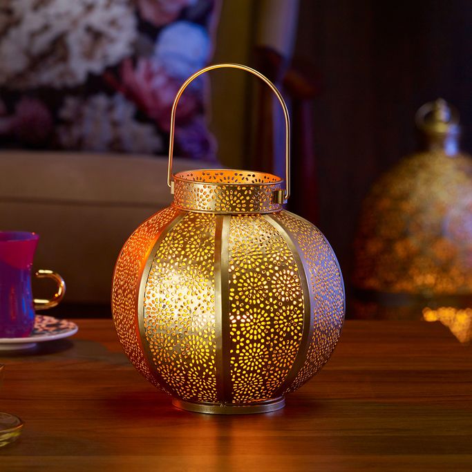 أسطورة من بين صفحات التاريخ تقول أن المنزل الذي يعيش فيه أندلسية فانوس سيكون مليئًا بالبهجة والعجائب. مظهره الفاتن سوف يحتضن ديكورك بكل دفئ ويضيء قلبك بجماله. نقوشه الإسلامية والهندسية ستلهم بيتك لتخلق مشهدًا مذهلًا. ظلاله تأخذ أشكالًا رائعة بفضل تصميمه الذي يسمح للضوء بالتسلل بكل بهاء. صنع من المعدن باللون الذهبي ويأتي مع مقبض ليسهل عليك حمله واستخدامه. أنير مساحاتك بروعته وأناقته.