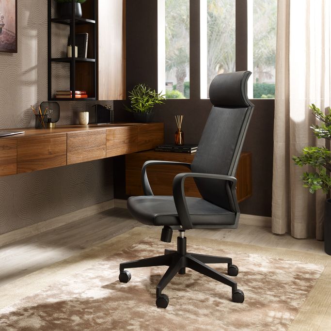 المستقبل الواعد. عش مجدك في مكتب مليء بالمميزات الجمالية والعملية لتحفيز روحك مع سكسيد كرسي مكتب. احصل على أقصى درجات الراحة وأنت تحقق أحلامك بينما تتخطى رؤيتك المستقبل الواعد. ينشر طابعه الأنيق حس الرقي في مكتبك ليملأه بالجاذبية. ستجعل ميزة تعديل الارتفاع تجربة مكتبك أكثر عملية حيث ستجد المستوى المناسب من الطول الذي يناسب تفضيلاتك. ستجعل العجلات من السهل الانتقال من مكان إلى آخر حول منزلك بكل يسير وسهولة. صُنع من الجلد والبلاستيك باللون الأسود ليملأ منزلك بمظهر خلاب. عزز حماسك للإنجاز في المكان المناسب.