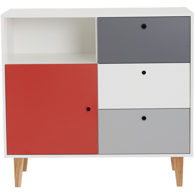 كونسبت خزانة ثلاث أدراج - أبيض | رمادي | أحمر