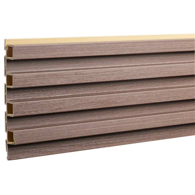 عزز جمال مساحتك مع تري تكسية حائط. مصنوع من مزيج من مسحوق الخشب والبلاستيك المعاد تدويره، باللون البني الفاتح. اجعل جدرانك تنبض بالحياة مع تصميم الخطوط العمودية المتناغمة.