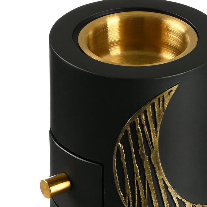 أجواء من التقاليد والروحانية. أنثر البهجة والروائح الفاخرة في كل زاوية مع ارتفاع دخان البخور مع هل هلاله مبخرة مع جرة تخزين. صممت بشكل أسطواني مع حامل للبخور وجزء لتخزين البخور. صنعت من السيراميك والمعدن لتحمل الحرارة باللون الرمادي ونقش هلال باللون الذهبي الأنيق.