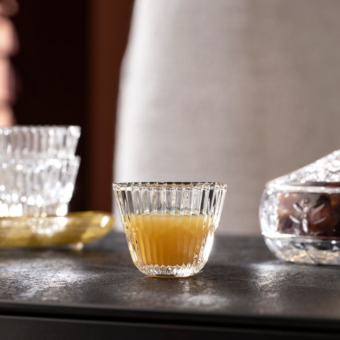 فن الطبيعة الملهم. انسج الضوء في خيوط شفافة لتخلق لوحة فنيّة مع جاليبا طقم فناجين قهوة. صمم الطقم بستة فناجين شفافة تتميز بخطوط كريستالية متلألئة. صنع من الزجاج الشفاف لينقلك في رحلة فنية ما بين اللوحات الخلابة والملهمة.