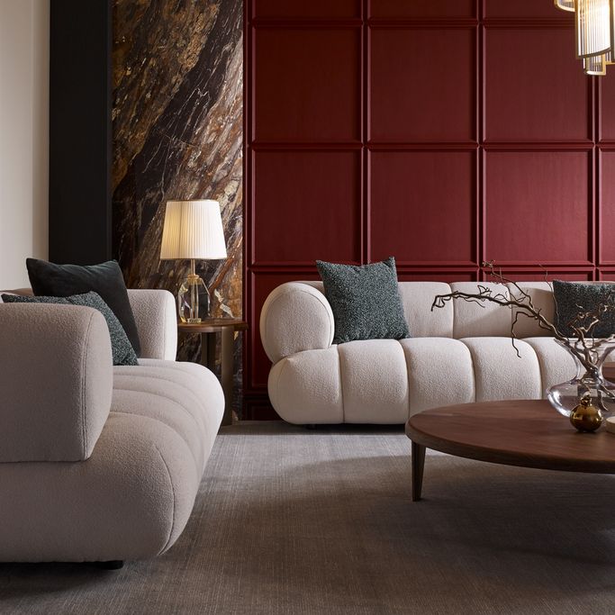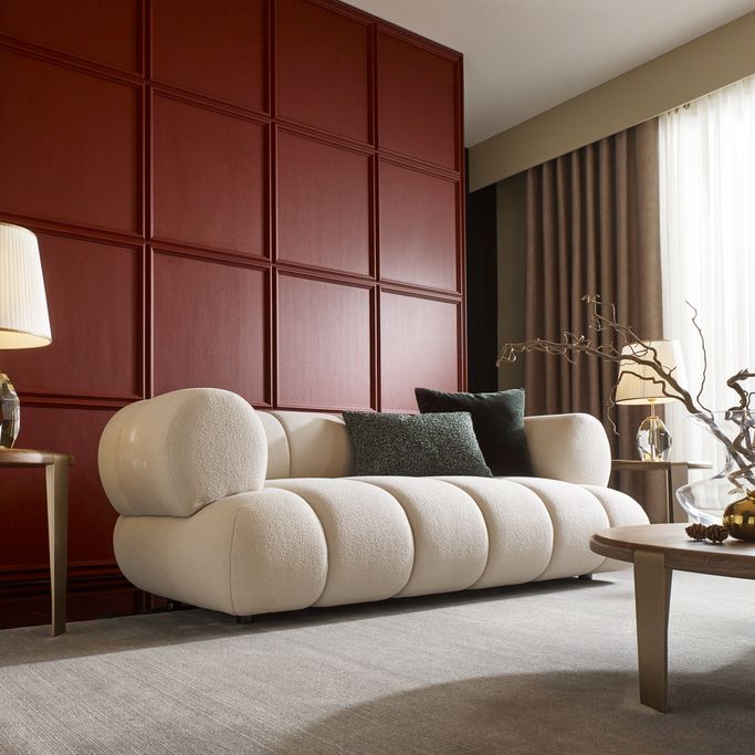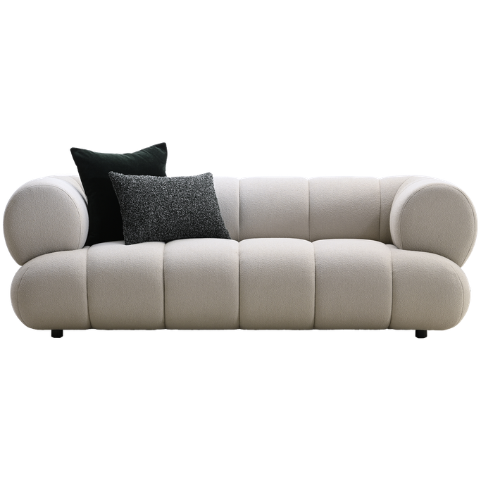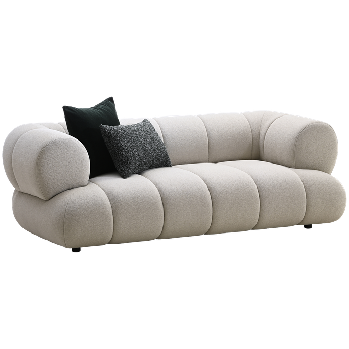 ادخل عالم الأناقة والاسترخاء مع فرانشيسكا صوفا، صُممت بمنحنيات دائرية ناعمة وخطوط متدفقة مع مساند مريحة للذراعين. صُنعت من هيكل خشبي ممتزج بالمعدن، ومغطاة بقماش ناعم باللون العاجي مع حشوة تدعم الجسم بشكل مثالي، لتبقى فرانشيسكا رفيقك الدائم في عالم الراحة والجمال.