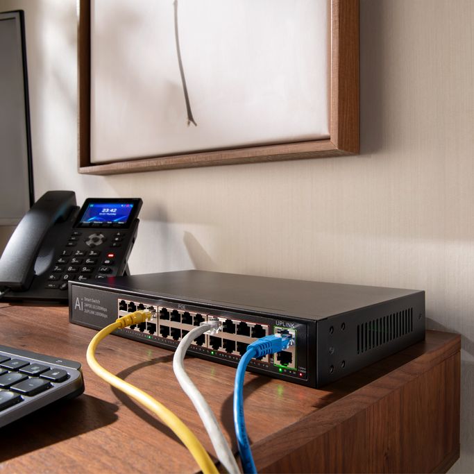محول شبكة ذكي 24 Poe بسرعة 10-100 Mbps