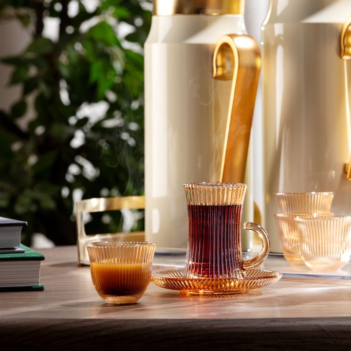 لاينز طقم فناجين شاي وقهوة - ذهبي