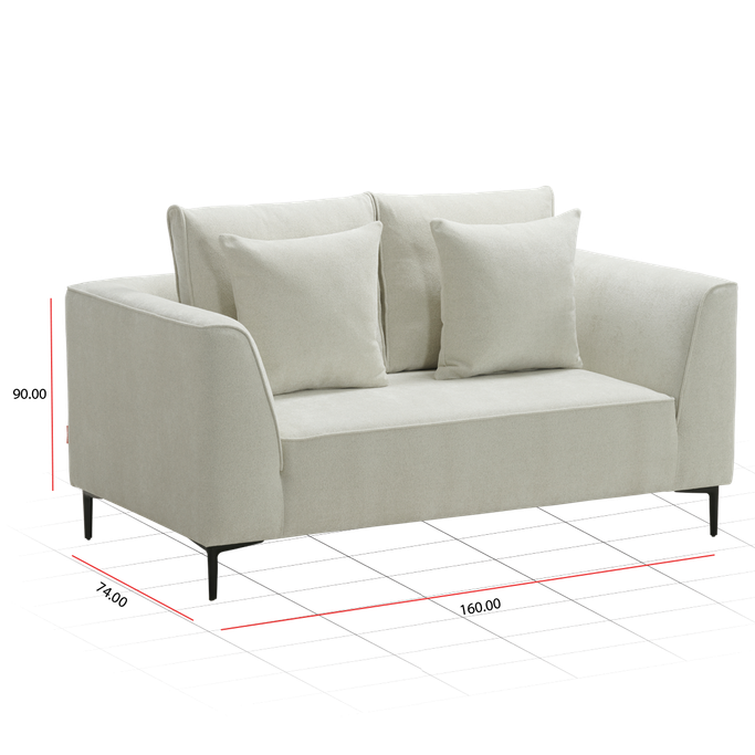 الفت انتباه ضيوفك بأناقة اختيارك مع لونا كنبة مقعدين. صُممت بشكل مستطيل مع مسند ظهر ووسائد إضافية، وأذرع جانبية، لتوفير أقصى درجات الراحة والدعم. صُنعت من إطار خشبي قوي وقماش البوليستر باللون الأبيض النقي. اجعل من لحظاتك وجمعاتك تجربة مفعمة بالأناقة والجمال.