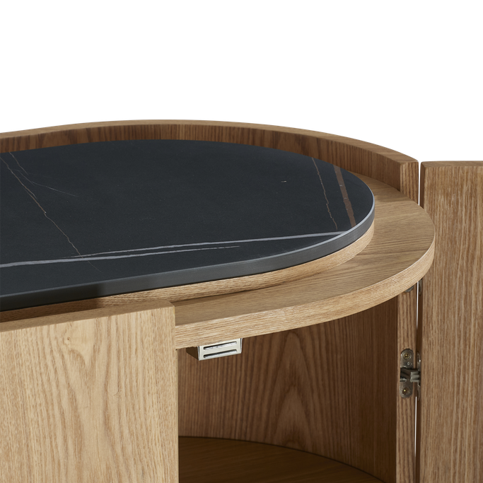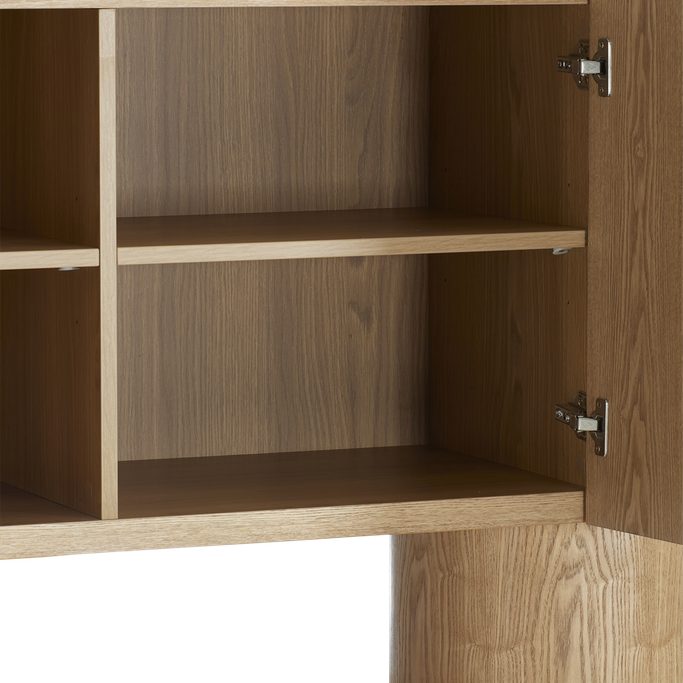 جهّز المكان المثالي لاستقبال ضيوفك مع بوفيه طعام أورو. صُمّم بخطوط منحنية وسطح واسع يعرض الإكسسوارات والديكور بأسلوب أنيق، مع واجهات أرفف متعددة لتخزين أدوات الضيافة بشكل منظم. صُنع من الفولاذ والسيراميك وخشب الألياف وقشرة الخشب باللون الأسود والبلوطي. أضف لمسة من الترتيب والجمال إلى مساحتك.