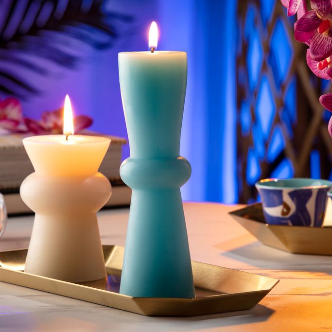 فريد من نوعه. تأمل الجمال الذي ينعكس على ديكور منزلك مع ياسمين شمعة مصممة. قدّر اللمسات المبدعة التي يضفيها وهج هذه الشموع في زوايا بيتك. صممت يدويًا بشكل سلس وفني ليلهمك بالتميز. صنعت من الشمع باللون الأزرق المائي كتذكير بقيمة المصنوعات اليدوية التي تبرز تفاصيل جمال اختياراتك. دلل ذائقتك بلمسات ساحرة وفريدة.