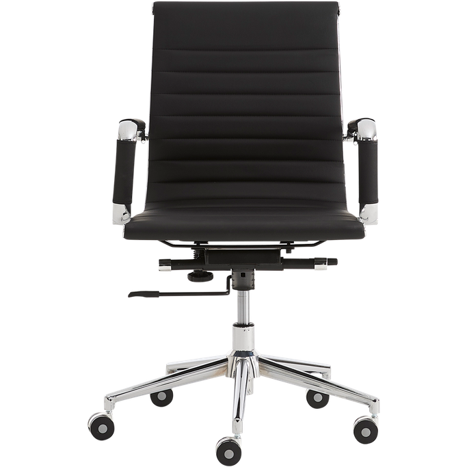 نقطة الابتكار. ابدأ قصة الابتكار والنجاح مع الرائع كرسي وينجر المكتبي. رحّب بإضافة اسثنائية لمكتبك المنزلي مع مزيجه الأنيق من الفخامة والخصائص العملية. يمنحك الجلد الأسود الناعم والقاعدة المعدنية تجربة مريحة أثناء ساعات العمل الطويلة. يتميز بانحناءة هيكله الرائعة وظهره المرن ليضمن لك وضعية جلوس صحية. تسمح لك العجلات بالتحرك بسهولة أثناء عملك أو الدوران. أنشئ منطقة عمل ملهمة وابدأ ابتكاراتك.