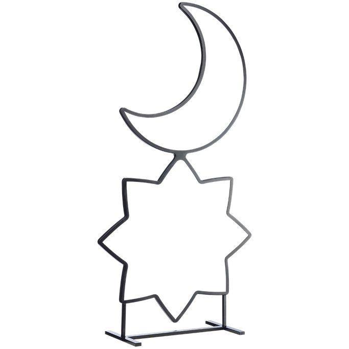استقبل الليالي المباركة بأناقة مع الهامة قطعة ديكور. صُممت من هلال رمضان ونجمة بخطوط انسيابية تعكس سحر الليل في أبهى صوره. صُنعت من المعدن والبلاستيك باللون الأسود. زيّن منزلك بروعة السماء في أجمل لياليها.