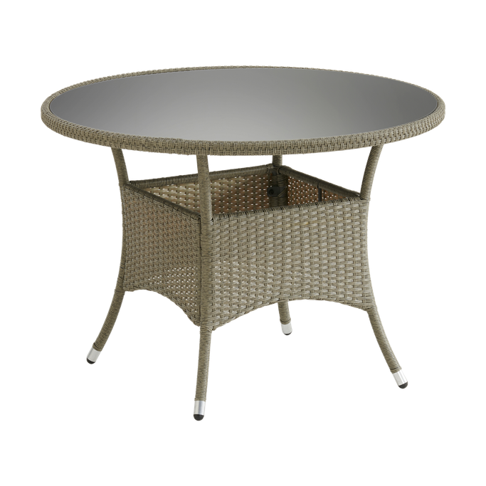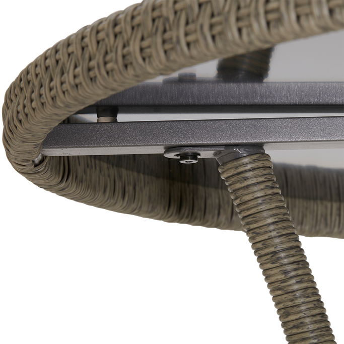 • صممت الطاولة بسطح زجاجي لحمايتها من العوامل الجوية ولتسهيل تنظيفها.