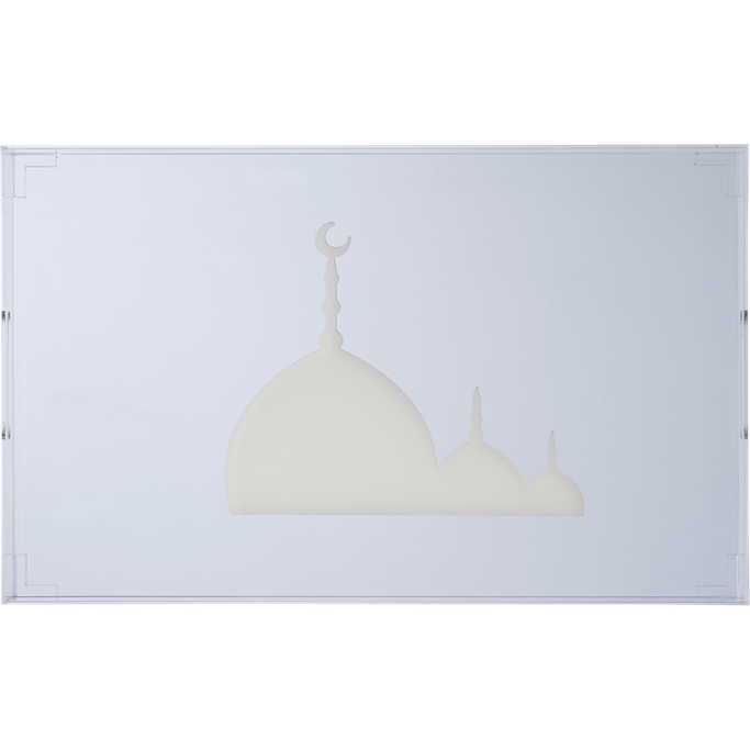 عرض الجمال. استمتع بتقديم أطباقك المميزة ومشروبات ضيوفك بطريقة أنيقة تعرض فيها جمال تقديماتك وتميزها مع آفاق صينية تقديم. صمم بشكل مستطيل مع رسوم لقباب إسلامية على قاعدة الصينية. صنع من الإكريلك الشفاف ومزخرف باللون الأبيض لإضافة لمسة من الفخامة.