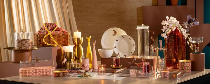 A heritage-inspired collection with a contemporary spirit, reflecting Ramadan through an elegant aesthetic. Featuring botanical motifs and a curated selection of tableware and décor designed for the holy month.