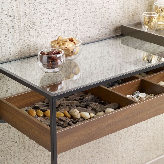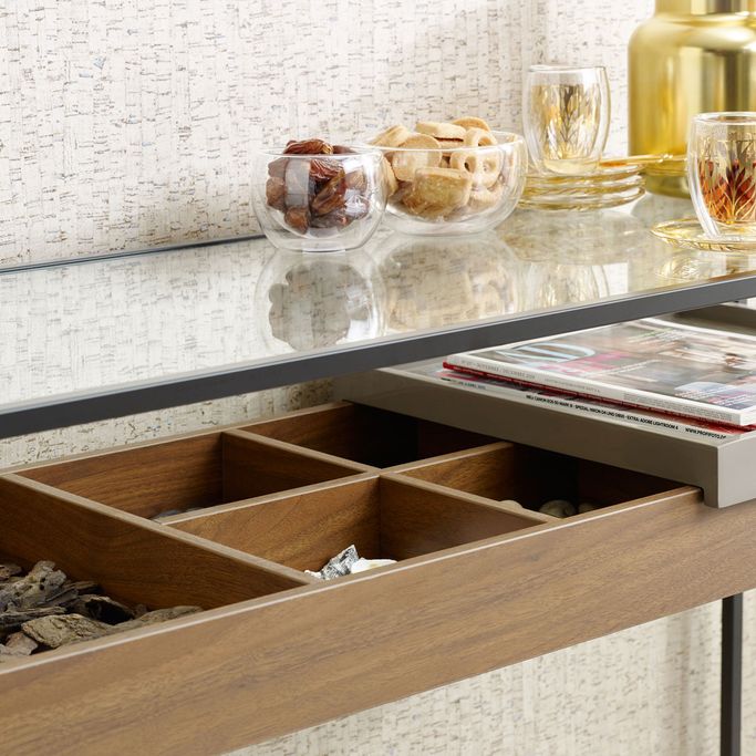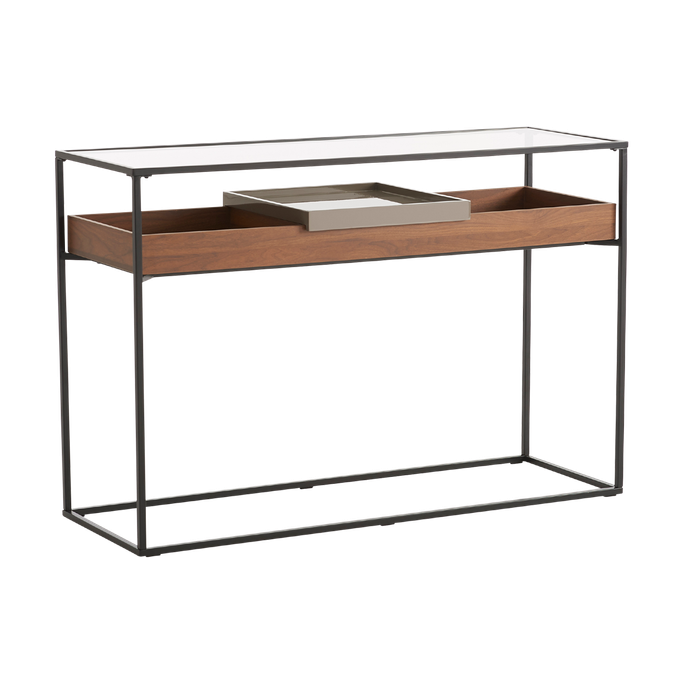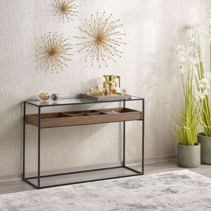 Inspire Your Creativity. Embark on an artistic journey with the Axel Console, a unique expression of your home's readiness. Immerse yourself in a world of stunning design and efficiency as you craft your space irresistibly. Designed with ample space and multiple compartments, ensuring the ease and elegance of organizing your favorite corner. It is made from Melamine wood, glass, and robust metal, it magically blends artistry and quality. Let this console be your artistic focal point to allow it to inspire your creativity.