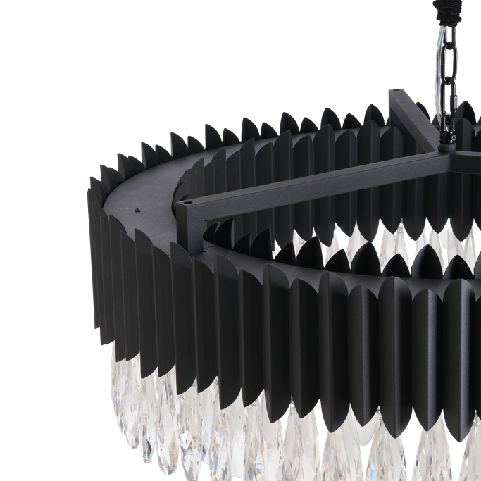 Express The Uniqueness Of Your Space with the Astro Modern Chandelier. Designed with an elegant circular geometric structure adorned with precisely arranged clear crystals. It is made from metal in a matte black color, combining durability and beauty. Illuminate your room with lighting that adds a touch of distinction.