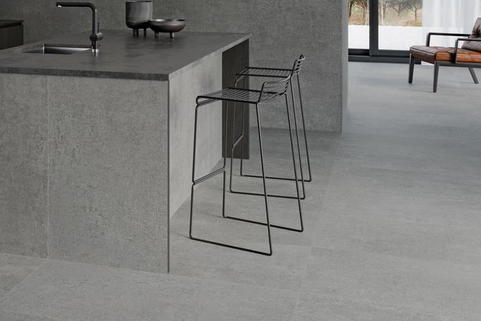 A Warm Glow with Braivel Tile. Made from matte porcelain in a Grey color, with spacious dimensions (120×120 cm), making it an ideal choice for medium-traffic residential and commercial spaces. A design that enhances calm and elegance in any decor.