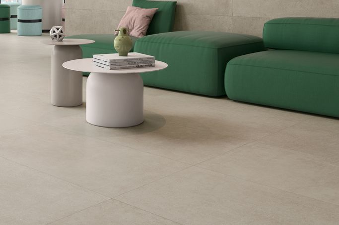 A Warm Glow with Braivel Tile. Made from matte porcelain in a peach color, with spacious dimensions (120×120 cm), making it an ideal choice for medium-traffic residential and commercial spaces. A design that enhances calm and elegance in any decor.