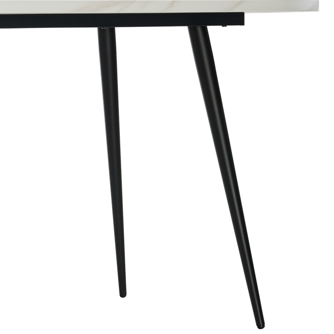 Create unforgettable family stories and memories with the Duo Dining Table. Designed with a rectangular surface featuring curved edges and elegantly symmetrical slanted legs, offering ample space for eight people. It is made from melamine and steel in off-white and black colors. Let your table witness the most beautiful gatherings.