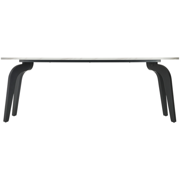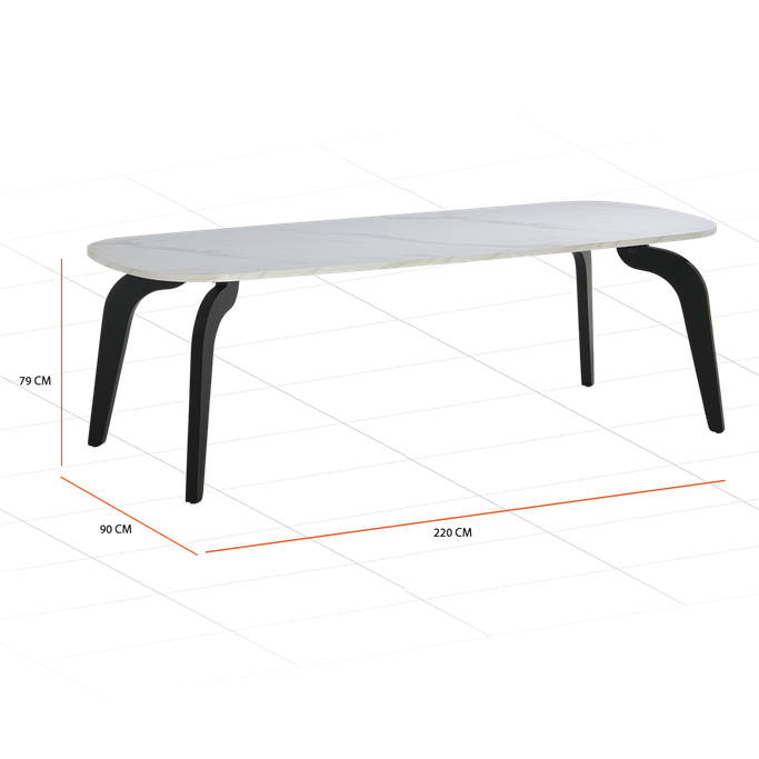 Create unforgettable family stories and memories with the Duo Dining Table. Designed with a rectangular surface with curved edges and legs with precise geometric angles, offering spacious seating for eight. It is made from melamine and solid Wood in off-white and black colors. Let your table be the centerpiece of the most beautiful gatherings.