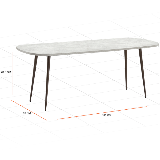 Duo 6-Seat Dining Table - Grey - 180 x 90 x 78.7 cm