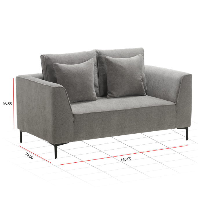 Capture your guests' attention with the elegance of your choice with the Luna Two-Seater Sofa. Designed in a rectangular shape with a backrest, additional cushions, and armrests to provide maximum comfort and support. It is made of a sturdy wooden frame and polyester fabric in a Dark Grey color. Make your moments and gatherings an experience full of elegance and beauty.