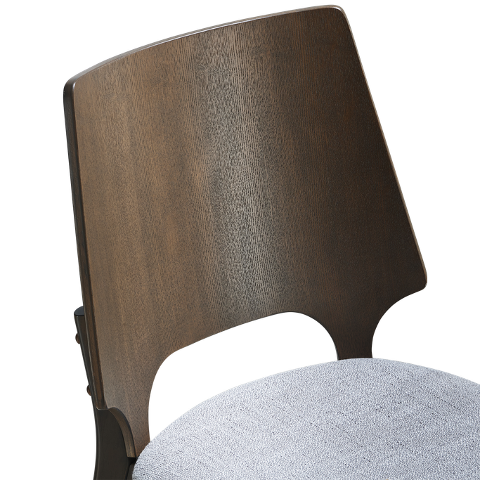 Draw inspiration from nature's warmth in a modern design with the Forest Chair. Designed with harmonious sunburst patterns on the backrest, featuring a comfortable padded seat and elegant angled legs. It is made from MDF & ash veneer in a brown color. Shine in your daily moments on this stunning seat.