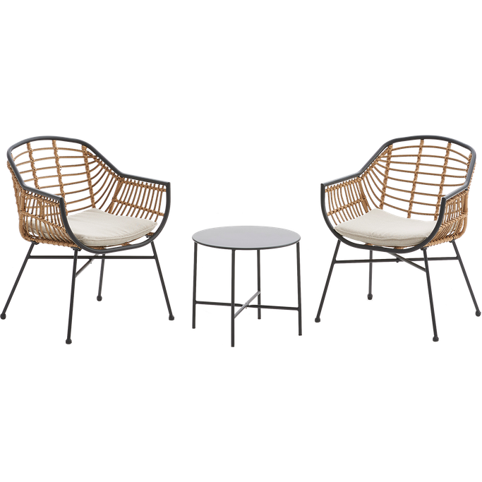 As if you were in a cozy meadow, your garden will be soothing with the rattan vibes of Lunde Balcony Set. Feel the gentle breeze blowing as the bird's chirp and the sunshine shines on your table. Your outdoor space will sing a symphony of beauty with its natural character that is reflected in every detail. It's made of steel, rattan, and polyester with grey and brown colors. Let the elegance of your décor be blown in by nature's winds.