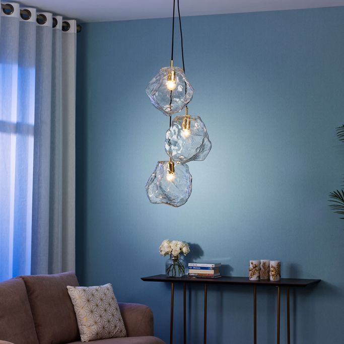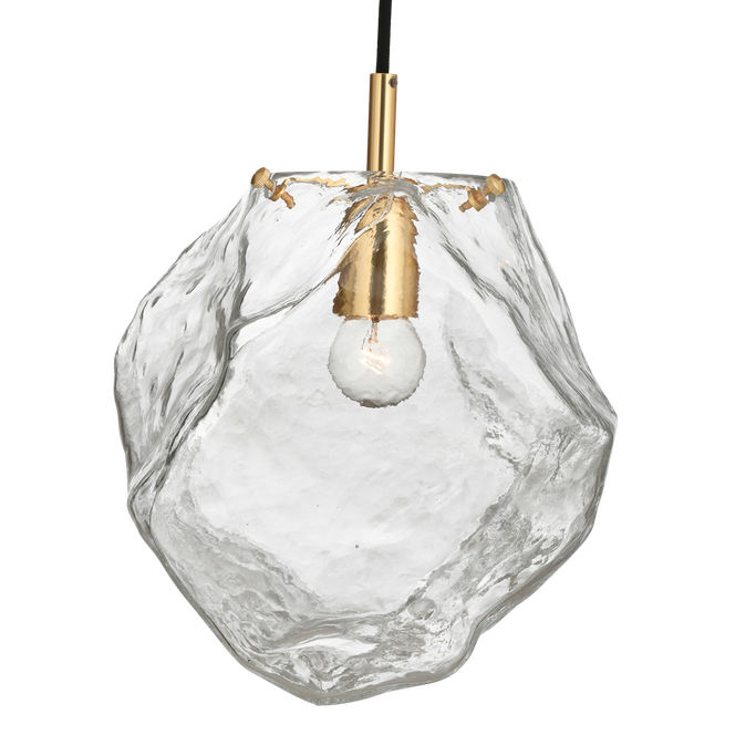 Radiant Elegance. Add a glow and warmth to your home with the Rock Pendant Light. Designed in the shape of a rock with soft contours that reflect the light on its surface. It is made from captivating golden-colored metal and clear glass.