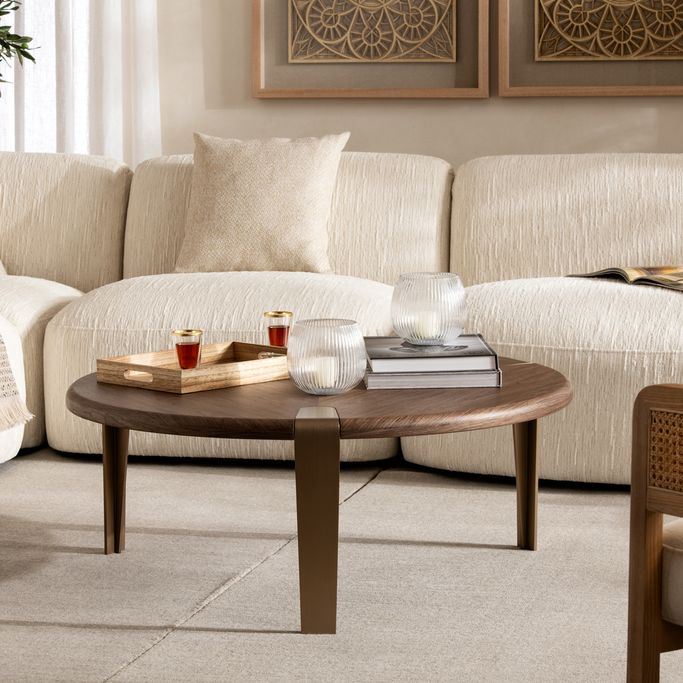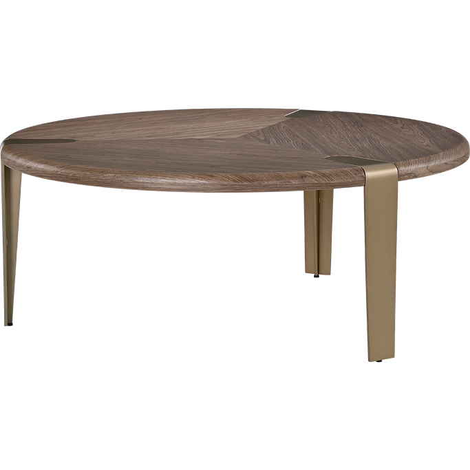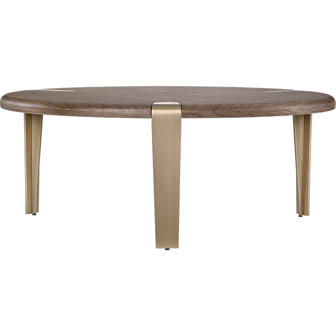 Add a touch of elegance to your home with the Bianca Middle Table. Designed with a smooth round top and brass legs for a modern touch. Made from wood in walnut color with natural patterns and finished with warm brass-toned stainless steel, it adds a touch of sophistication to your space.