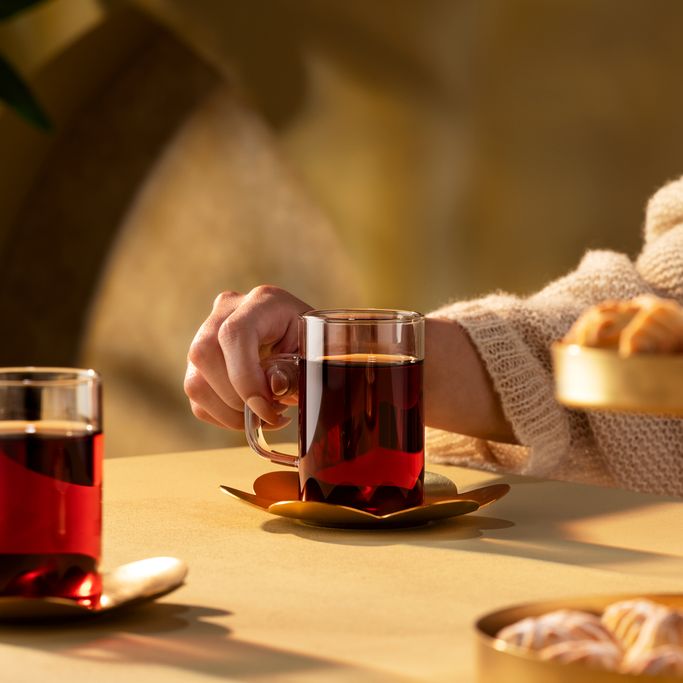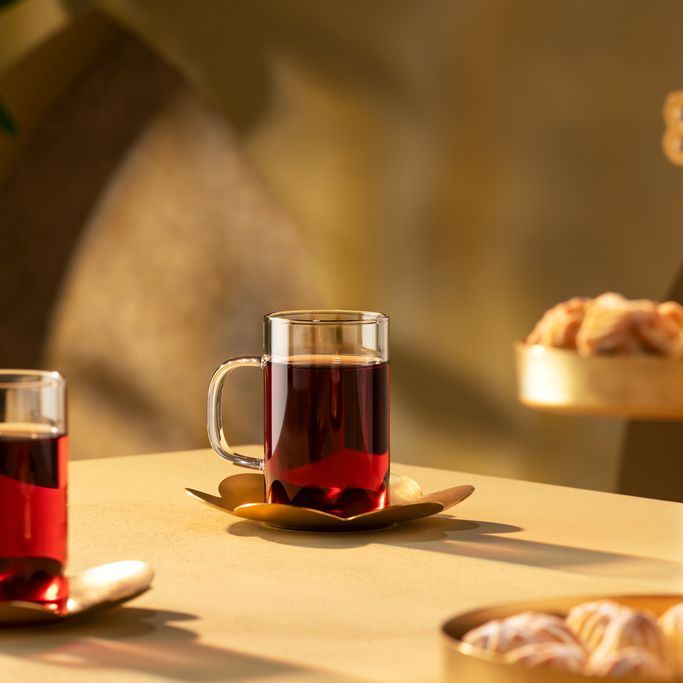 لحظات مزهرة. تأمل تحول كل رشفة من الشاي إلى قصيدة حالمة مع جليلة طقم فناجين الشاي. صُمم الفنجان بدقة مع خطوط واضحة ومقبض، مصحوبًا بأطباق صغيرة بتصميم زهرة. صنع الفنجان من الزجاج الشفاف والطبق من الفولاذ المقاوم للصدأ بلون ذهبي. دع لحظات الشاي تزهر بالذكريات.