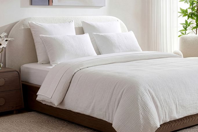 لو نوماد غطاء لحاف مع غطائين وسادة - أبيض نقي - ٢٤٠ x ٢٢٠ سم