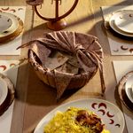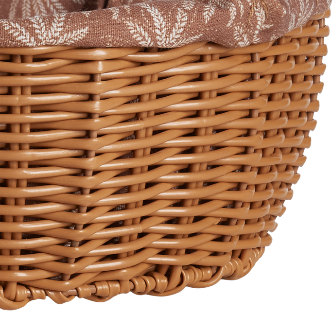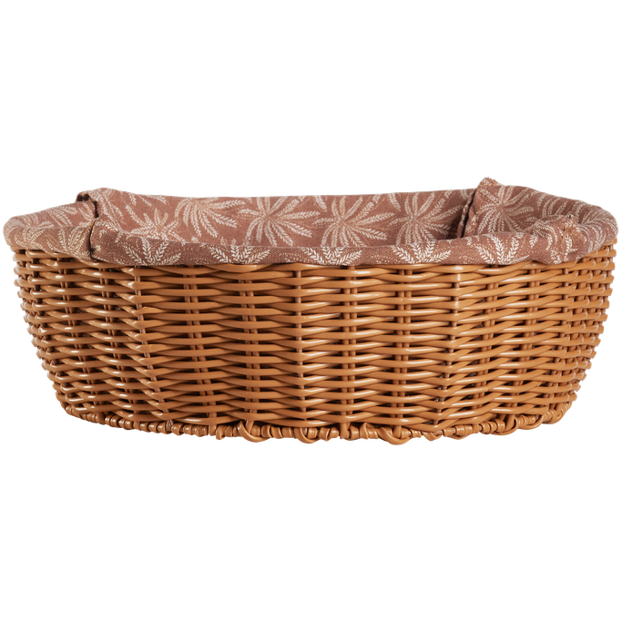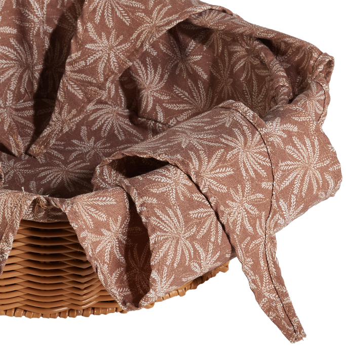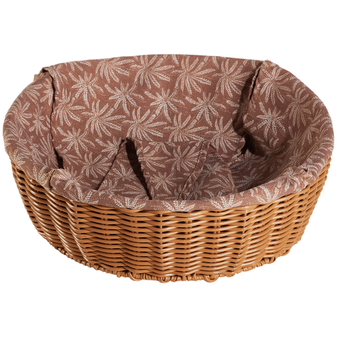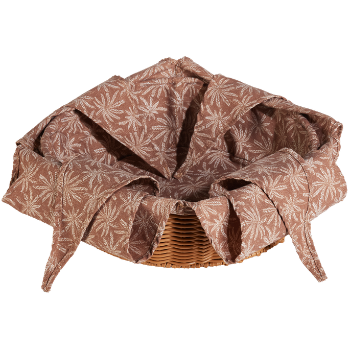 قدم مخبوزاتك الطازجة بكل حب مع زيانه حافظة خبز. صُممت بشكل دائري بقاعدة منسوجة ذات حواف مرتفعة، مع بطانة داخلية ناعمة مزينة بنقوش نباتية مميزة. صُنعت من القماش المتين باللون البني. أكمل أناقة مائدتك الرمضانية.