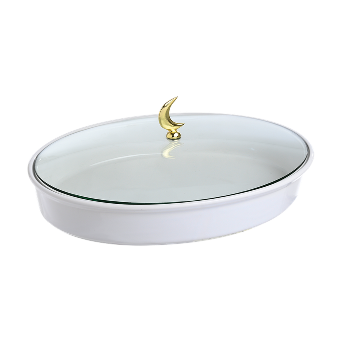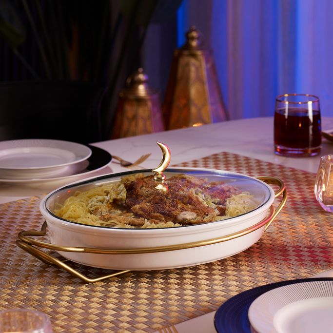 اثري كل لحظة. دع ضوء القمر المتوهج ينير طاولة طعامك مع غسق طبق تقديم. اخلق مساحة تفيض بالأناقة الاستثنائية أثناء تقديم طعامك بأسلوب أنيق. سوف يملأ شكل القمر منزلك بتوهج أخاذ لتنير روحك. مصمم بهيكل دائري ومقابض ذهبية ليناسب جميع احتياجاتك. صُنع من الزجاج والمعدن بظلال بيضاء وذهبية ليضيء منزلك برونق ساحر. سيسعد الهلال بزيارة مساحتك لإثراء كل لحظة تشاركها مع أحبائك.