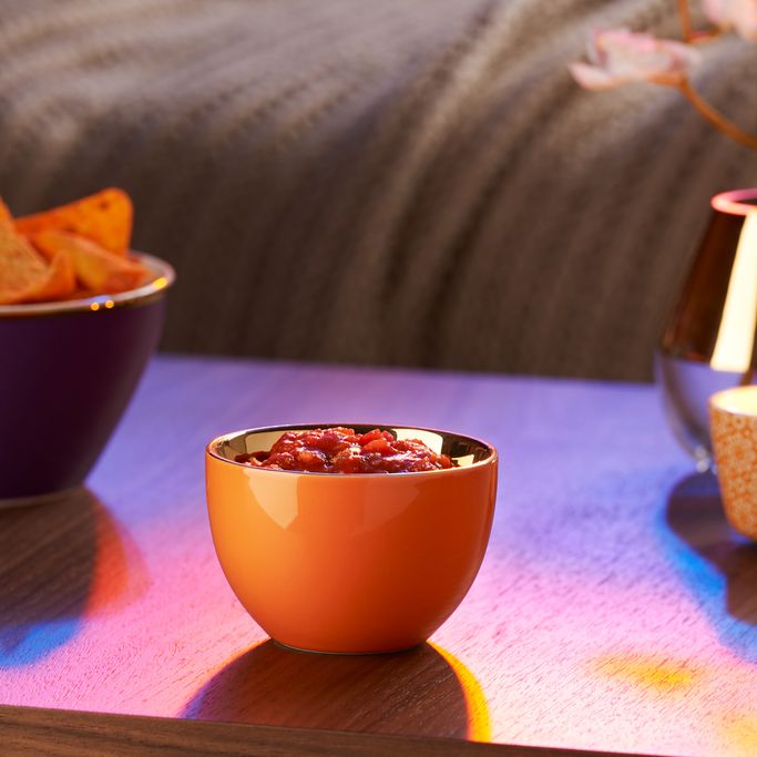 طرقات الأندلس. عبر عن الفرح والتفرد بالألوان المليئة بالمعاني التاريخية مع المميز أندلسية وعاء تغميس. بظلاله التي تعكس جمال اللحظات في أعماق السعادة سيشرق على طاولة طعامك. مستوحى من طرقات الأندلس النابضة بالحياة والإطلالات البهية ليعطيك قطعة لا تنسى. قدم صلصاتك المفضلة ودعه تأخذ أجواء مائدتك إلى عالم البهجة. صنع من السيراميك باللون البرتقالي وطبقة داخلية ذهبية لتضفي رونقًا ساحرًا. دع لمسات الألوان تملأ منزلك.