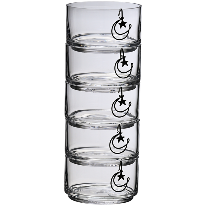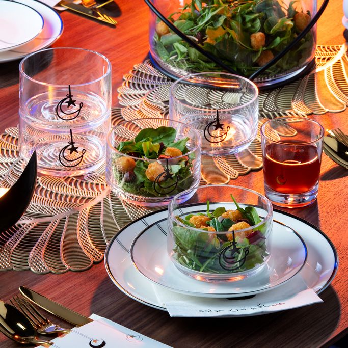 مع كل قمر هناك ضياء، والجميل مرسم طقم أوعية جانبية سينير ما حولك بالنور. ستجلس في وسط مائدتك كما لو كنت في عنق السماء. صمم بتوازن مثالي بين الجمال النقي ونقوش الهلال المجيدة. صنع من الزجاج والمعدن بخلفية شفافة ولمسات سوداء لتضفي مظهر أنيق. دع تدفق الروعة يتغلغل في لحظات طعامك.