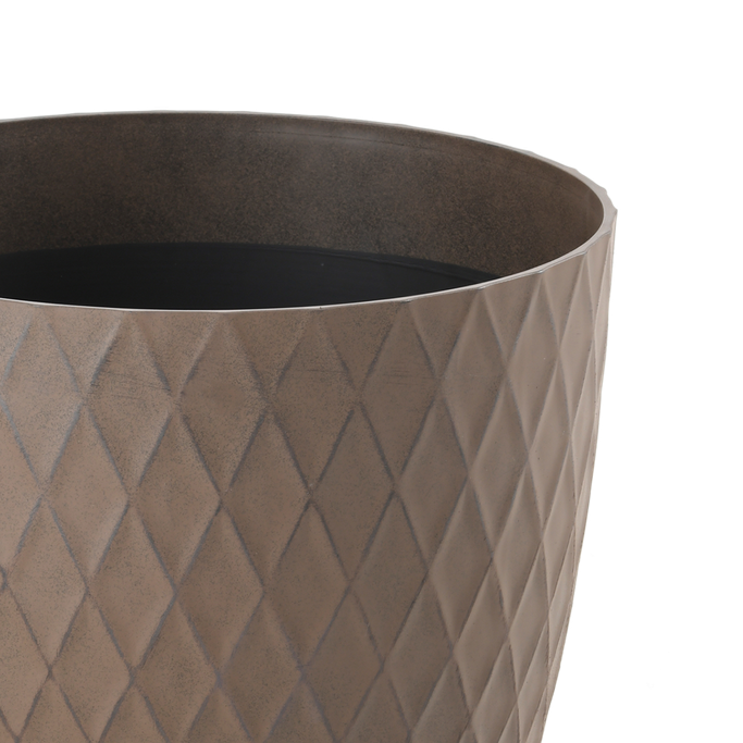 حديقة العجائب. مع فريزيا طقم أصيص ستزهر حديقتك السحرية بجميع أنواع الزهور الجميلة. اجعل هذا الأصيص رفيقك المثالي واستمتع بجمال تدلي الأغصان الرقيقة. مزيج الخطوط الأفقية الذي ينعكس في تفاصيل الهيكل ونمطه المستدير سيخلق أعجوبة بصرية تملأ مساحتك بالروعة. يحتوي هذا الطقم على ثلاث قطع متنوعة الأحجام تتسع لجميع نباتاتك وتتناسب مع أي ديكور. يتميز تصميمه بفتحة تصريف في الأسفل لتسريب مياه الري. صُنع من بلاستيك بولي بروبيلين باللون البني لينشر رونق آسر في منزلك. حول فنائك إلى مساحة من عالم الخيال.