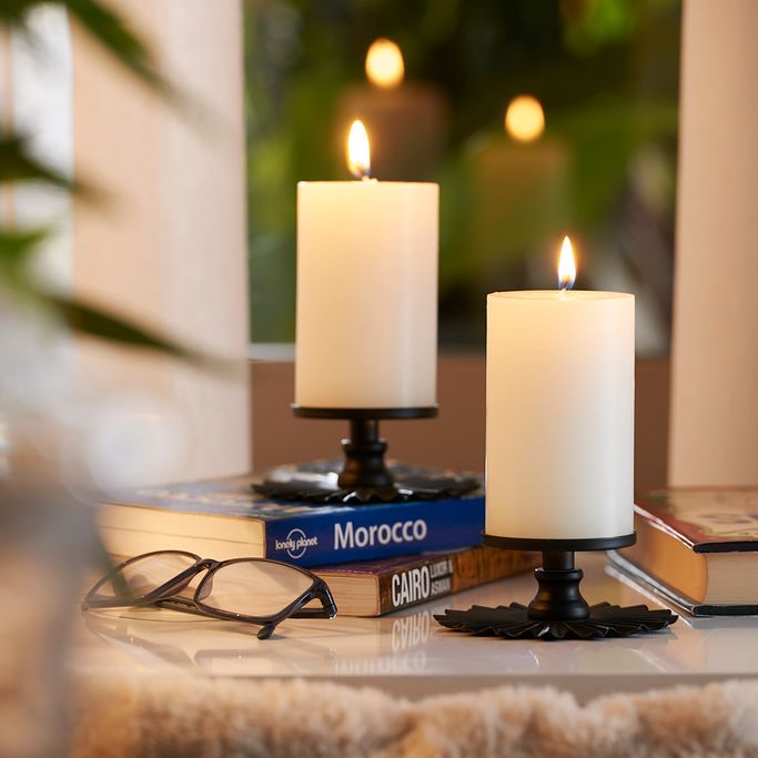 أجواء رائعة. أضف إشراقة إلى ديكورك مع الأنيقة شمعة سوليد. دع الضوء يسطع بكل ضياء ويخلق لك أمسية رومانسية. صممت بشكل دائري مثالي لتضيف أناقة إلى مجموعتك الديكورية. صنعت من الشمع باللون الأبيض لتلهم جمال بيتك. استمتع بتوهج الضياء في كل زاوية.
