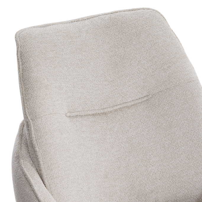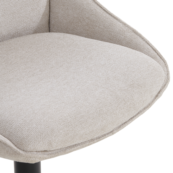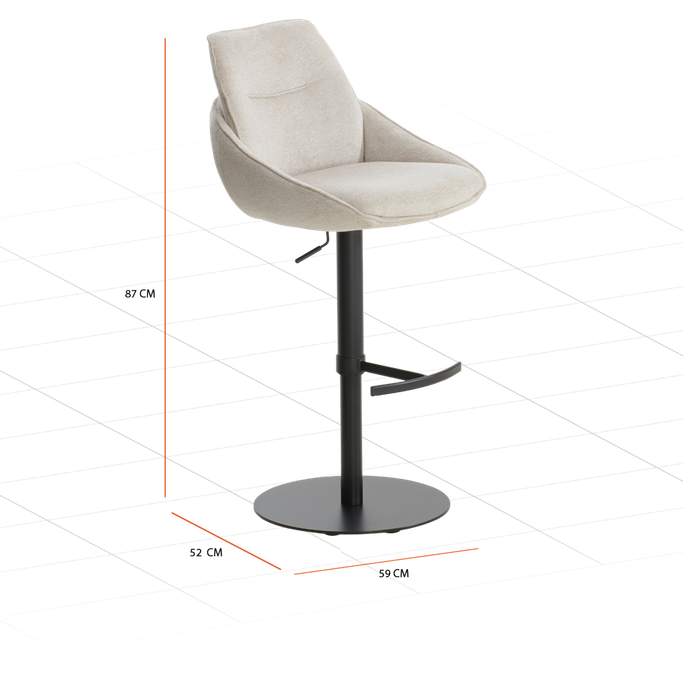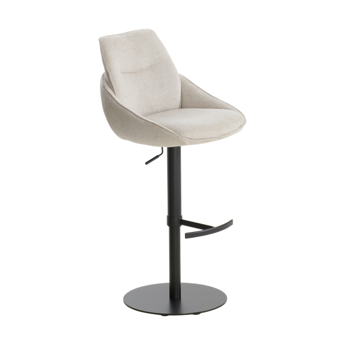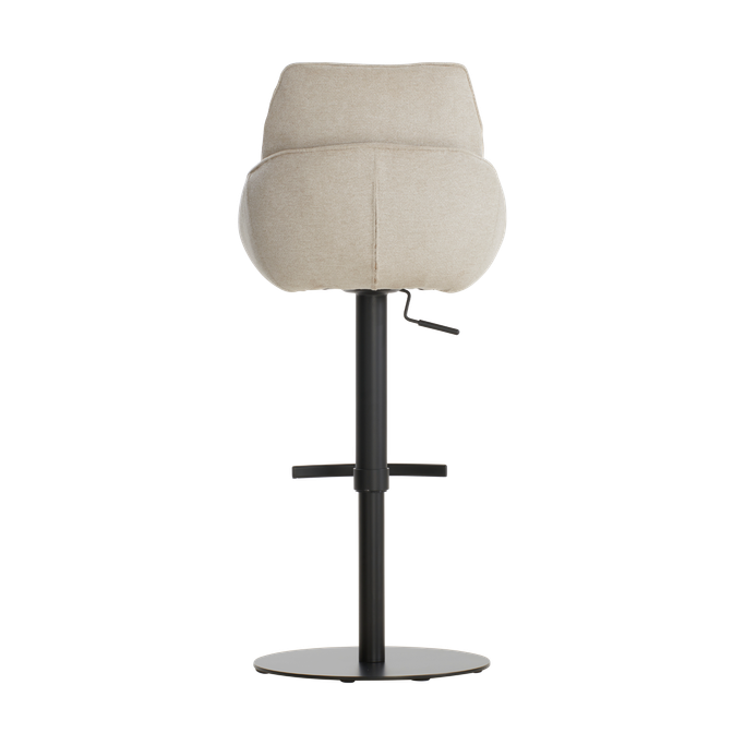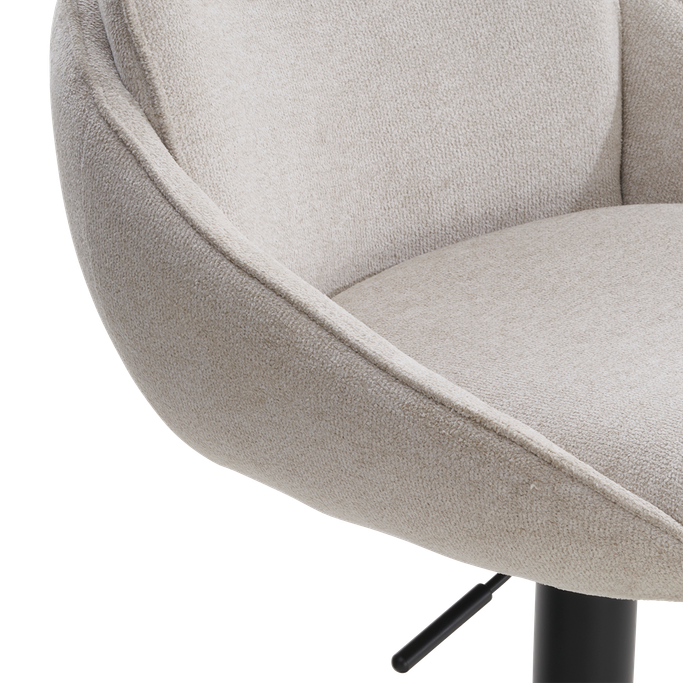 دع أحاديث الأصدقاء تزهر مع أيكون كرسي مرتفع. صُمّم بمسند ظهر منحني ومقعد مبطن مع جوانب داعمة للراحة، وقائمة على شكل عامودي قابلة لتعديل الارتفاع، يرتكز على قاعدة دائرية متينة. صنع من الحديد والفوم وخشب الأبلكاش والقماش باللونين البيج والرمادي. اصنع ذكريات جميلة مع ضيوفك.