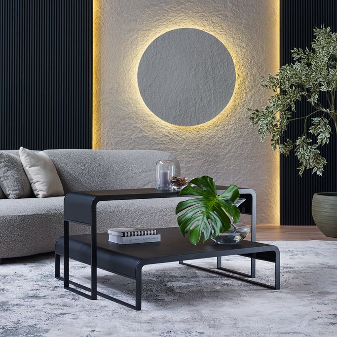 استمتع بفخامة التصميم العصري مع سيرينا طاولة وسط، صممت بانحناءات انسيابية وقاعدة مرتفعة الطول، صنعت من الفولاذ والجلد المصنوع أسود اللون. هذه الطاولة الأنيقة هي بالتأكيد ماتحتاجه في منزلك.