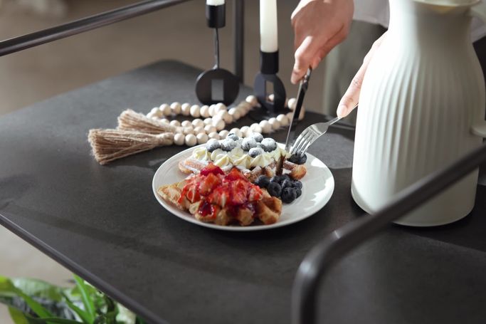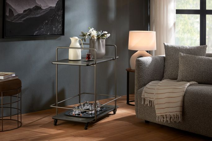 تفرّد بأسلوب ضيافة راقٍ مع فالو عربة تقديم. صُممت بطابعٍ عصري يتسم بالأناقة والهدوء، تضم صينيتين واسعتين لترتيب المشروبات والأطباق، ومزودة بعجلات صغيرة سهلة التوجيه مع قفل أمان لضمان ثبات العربة. صُنعت من أرفف خشبية مدمجة بطبقة سيراميك علوية، مع إطار معدني باللون الرمادي. استمتع بالعملية والجمال في آن واحد.