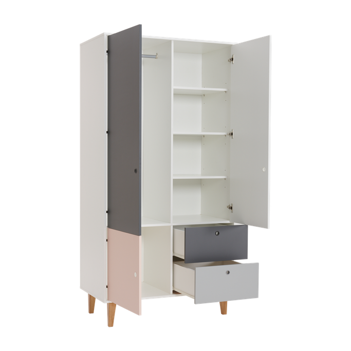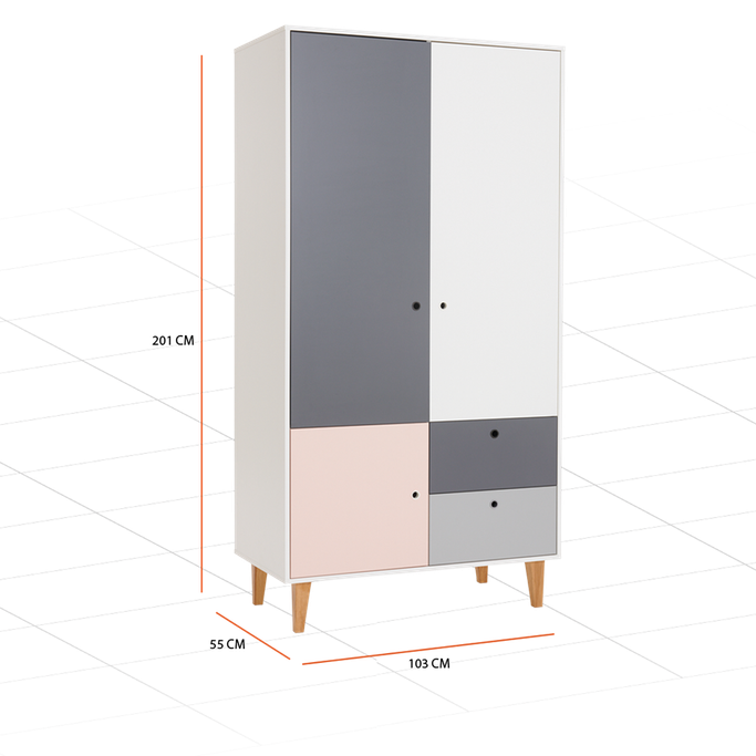 ساحر وآسر. دع دولاب ملابس كونسبت يأسرك بجاذبيته ويخلق منطقة ساحرة تعكس تميزك. سيخطف أنظارك ويتألق في منزلك بألوان التباين الفريدة. تتساءل عن حل لتنظم ملابسك؟ ستكون مساحات الأرفف والأدراج الرائعة مفتاحك لرحلة ترتيب استثنائية. تضيف أرجلها الخشبية العالية الجمال والأناقة للمظهر العام. يتألق اللون الوردي في التصميم ليعكس مشاعر الإبتكار والأفكار الملهمة. صُنع من الميلامين الأبيض مع مزيج من الدرجات الرمادية الآسرة تخلق لوحة فنية مثالية. امنح إضافة مذهلة لمساحتك الفريدة.
