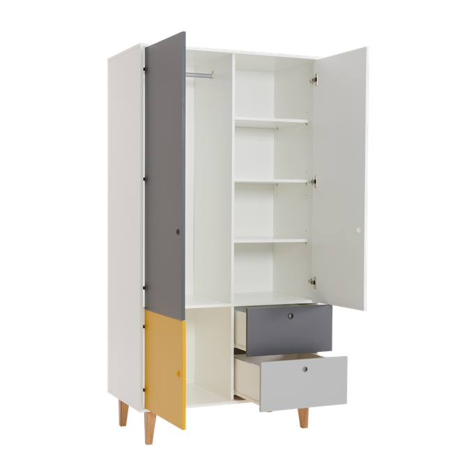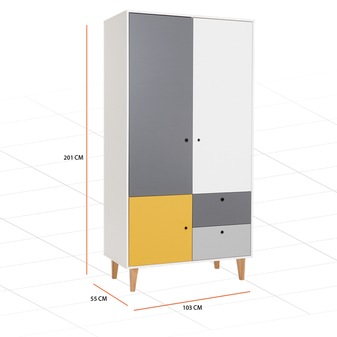 ساحر وآسر. دع دولاب ملابس كونسبت يأسرك بجاذبيته ويخلق منطقة ساحرة تعكس تميزك. سيخطف أنظارك ويتألق في منزلك بألوان التباين الفريدة. تتساءل عن حل لتنظم ملابسك؟ ستكون مساحات الأرفف والأدراج الرائعة مفتاحك لرحلة ترتيب استثنائية. تضيف أرجلها الخشبية العالية الجمال والأناقة للمظهر العام. يتألق اللون الأصفر في التصميم ليعكس مشاعر التفاؤل والأفكار الملهمة. صُنع من الميلامين الأبيض مع مزيج من الدرجات الرمادية الآسرة تخلق لوحة فنية مثالية. امنح إضافة مذهلة لمساحتك الفريدة.