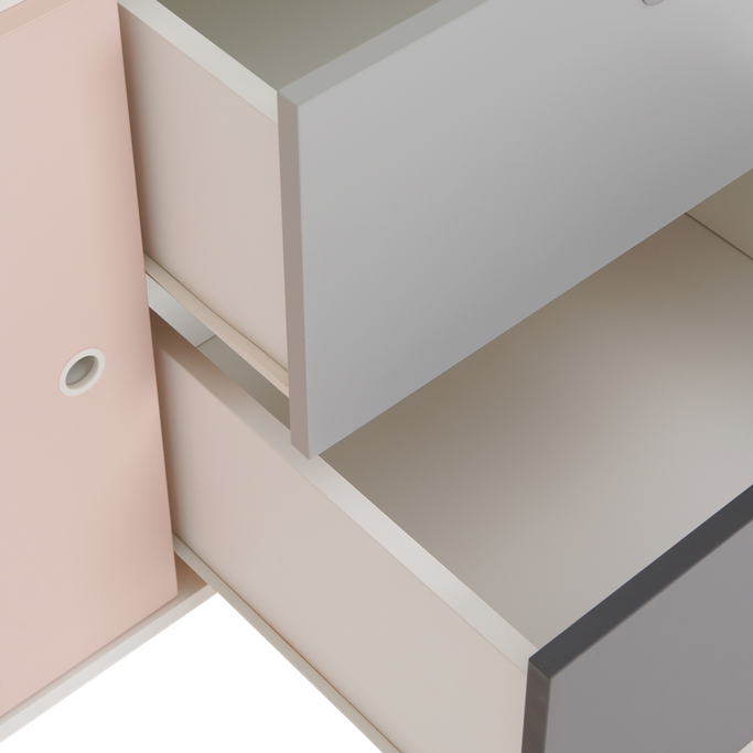 جمال الألوان. انغمس في لحظات مليئة بالجمال والأناقة مع كونسبت دولاب. كل لون سيعيد ملء روحك بمشاعر لطيفة ودافئة. ستخلق أدراج الدولاب المختلفة مساحة مميزة تعكس حرية اختياراتك الفريدة. سيحتوي الدولاب على جميع ملابسك وأحذيتك وملحقاتك الشخصية بشكل مثالي. سيوفر المقبض المجوف وصولاً سلسًا لمحتوى الأدراج الفسيحة. ستضفي أرجله مساحة واسعة وستعكس جمال التفاصيل في غرفتك. صنع الهيكل من الميلامين باللون الأبيض والأبواب بالرمادي والخزانة باللوردي لإبراز المظهر الآسر لمنزلك. دع نسمات الجمال تتألق في أرجاء الغرفة.