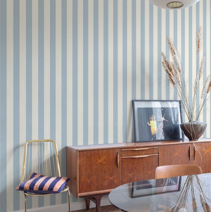 ايقاع متناغم يملأ جدرانك مع ميزون ورق جدران. مصنوع من بلاستيك الفينيل والقماش غير المنسوج باللون الأزرق الفاتح، ويتميز بتصميم خطوط عمودية واسعة تمنح المساحة إحساسًا بالاتساع. اجعل ديكورك يتناغم بأناقة مع هذا النمط الجذاب.
