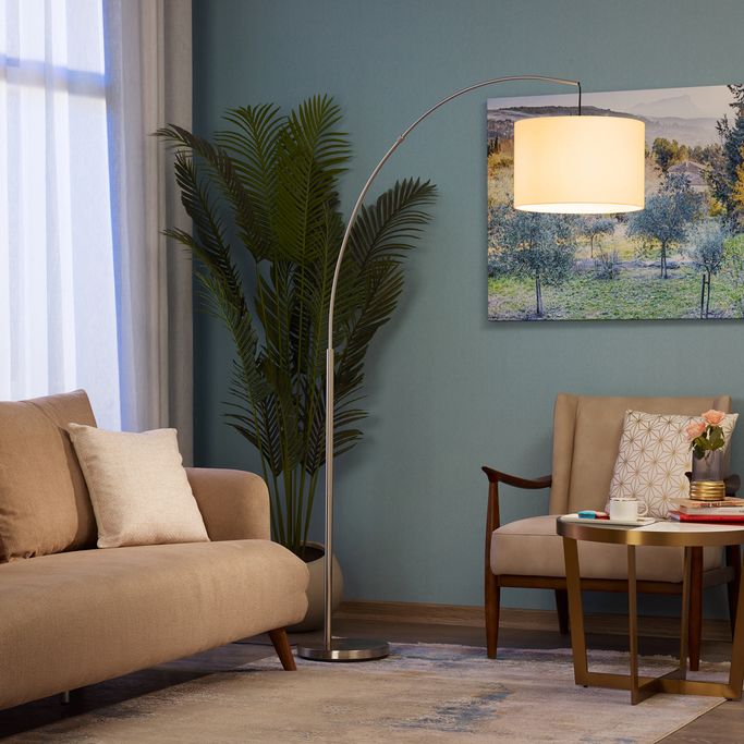أطلق طاقة الإبداع مع آرش إضاءة أرضية. صُممت بقوس انسيابي ممتد وقاعدة أنيقة. صُنعت من المعدن بتشطيب كروم لامع مع غطاء من القماش باللون الكريمي. وزع إضاءة متناغمة تمنح مساحتك حيوية جديدة.