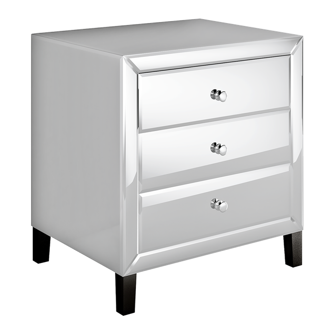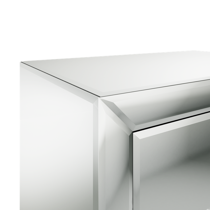 متعة جمالية. دع الرائعة إمبر طاولة جانبية للسرير تضيء غرفة نومك بجمالها ورونقها. ستمنحك تفاصيلها متعة جمالية وتعكس ذوقك المتفرد. صممت بأرجل سوداء تتميز بشكلها الأنيق. صنعت من الخشب والمرايا الزجاجية بلمسات سوداء. في اللحظة التي تسقط فيها عينيك عليها ، ستسحرك بجمالها.