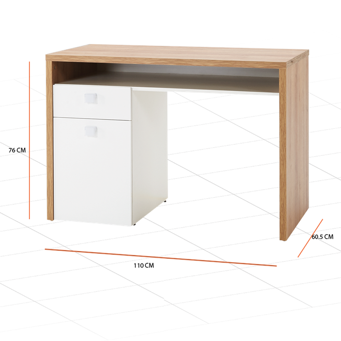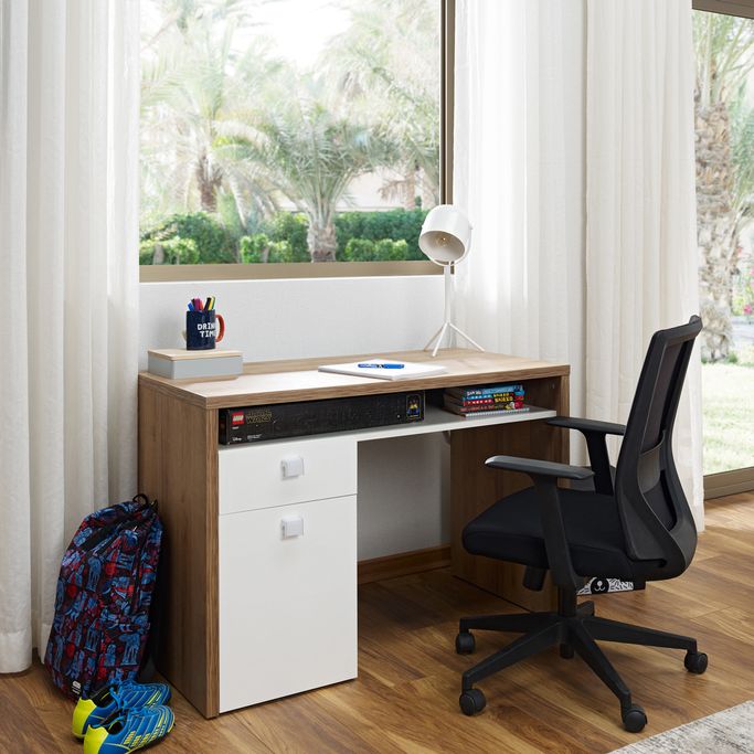 اكتشف المجهول. تعمق في فضولك واكتشف المجهول مع مكتب قلوبو. خصص مكانًا لاستكشاف العالم واملأ مساحتك بشعور من التعجب والدهشة. ارتقِ إلى آفاق جديدة مع تصميمه الأنيق الذي سيأخذك في رحلة استثنائية. أضف لمسة عصرية لغرفتك من خلال تنسيق أدواتك المكتبية في الخزانة السفلية. مصمم بدرج مفتوح في الأعلى لإبقاء جميع كتبك وأوراقك الدراسية منظمة وسهلة الوصول. سيساعدك ظهره المفتوح في وضعه في أي مكان بالغرفة. مصنوع من الميلامين باللون البلوط واللون الأبيض ليعكس أجواء لطيفة في بيتك. احتضن الجمال في مساحتك.