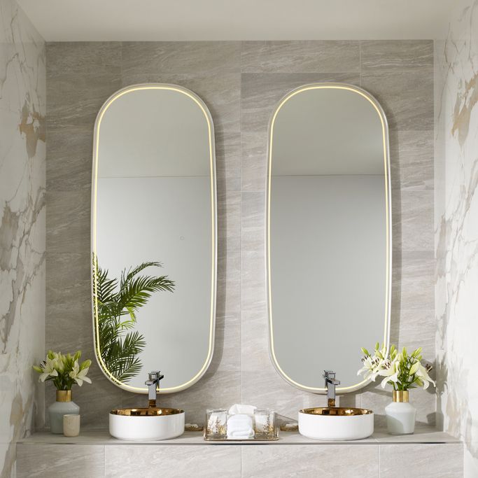 آرت مرآة مع إضاءة - فضي