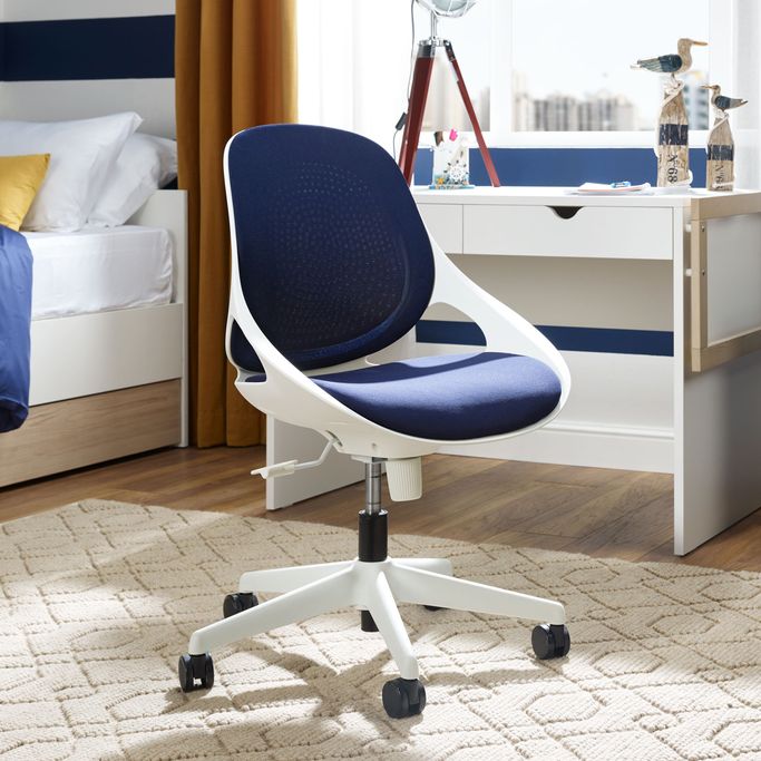 فوق القمر. انطلق في رحلة ممتعة فوق القمر لتصل إلى حلمك مع كرسي مكتب رايدر. يدعوك المزيج بين ميزاته العملية ومظهره الجذاب لتعبر عن إبداعك في بيئة فريدة من نوعها. ستضيف ألوانه الجمالية والحيوية وطابعه العصري لمسة فنية زخرفية لتكون الإضافة الأنيقة لمظهر مكتبك المعاصر. استمتع بأقصى درجات الراحة أثناء التعلم والابتكار مع داعم الظهر الذي سيجعل تجربة جلوسك أكثر أسترخاء. تتيح لك خاصية ضبط الارتفاع لتعديل الكرسي ليناسب طولك كما يحلو لك. ستنقلك عجلاته من مكان إلى آخر بسهولة ويسر. صُنع من البوليستر والبلاستيك بظلال بيضاء وزرقاء لإضفاء حضور قوي في مساحتك. قم بإلقاء الضوء على مكانك الساحر بقطعة فريدة من نوعها.